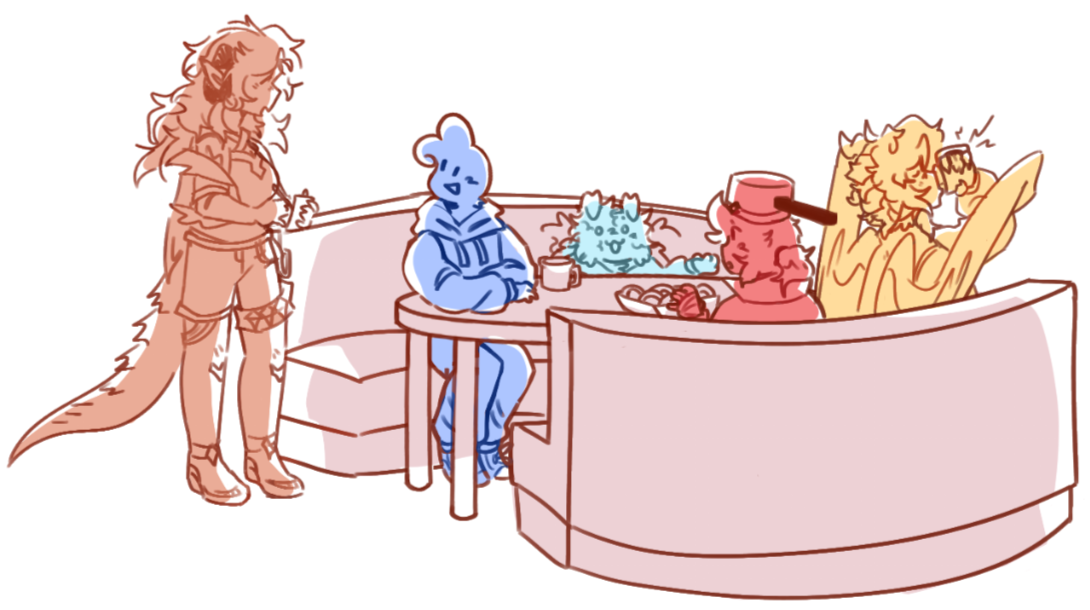 Adding a character: depends on how detailed the oc is, I don't charge if they have a simple pet you want to draw with them!loose colouring: + $10